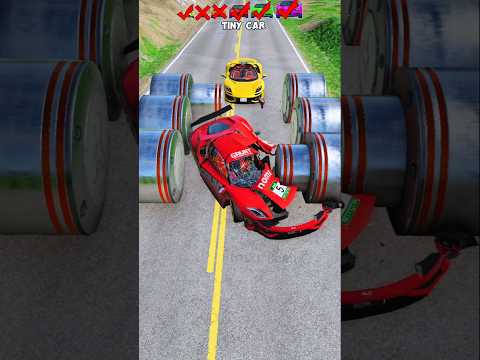 Exotic Cars & Tiny Car vs Giant Rollers Brutal Destruction Test! - BeamNG Drive #shorts