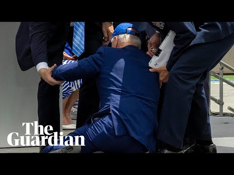 Joe Biden falls on stage at US air force academy ceremony