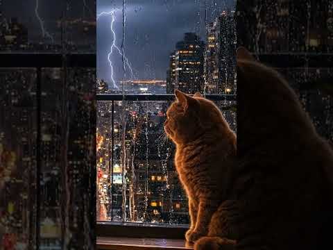 City Lights|Rain Sound| Rainy Nights |Cat In The Window #shorts #shortvideo