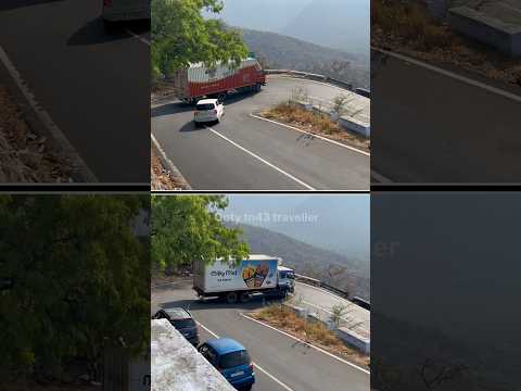 Bharat Benz and TATA truck going in a sharp curve ghat road #tatalorry #bharatbenz #lorrylife