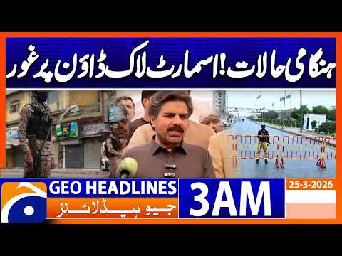 Smart lockdown considered in Sindh | Headlines Geo News 3 AM (25 March 2026)