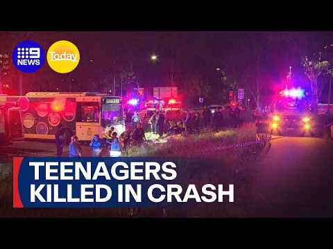Two teenagers on motorbike killed in crash with bus | 9 News Australia