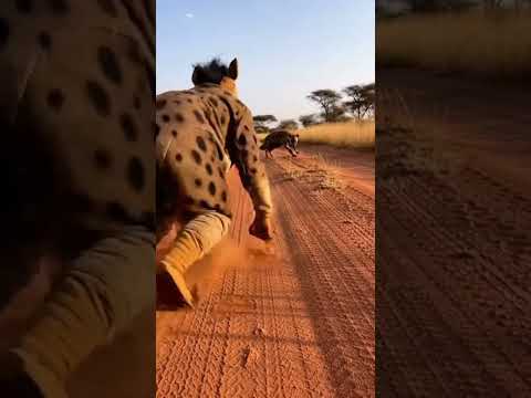 Hyena Chase in the African Savannah! 🐾 #Hyena #Savanna #Wildlife