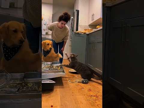 😹 Cat Blames the Dog for the Mess! You Won’t Stop Laughing! 🍝🐶#shorts