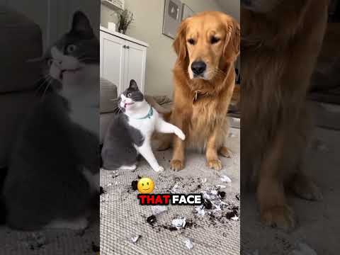 When the owner blaming cat and cat blaming dog gets hilarious #catblamingdog #petmemes #catvsdog