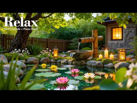 Relaxing Piano Music Calm Your Mind 🌿 Bamboo Water Fountain, Anxiety Relief, Deep Sleep Music