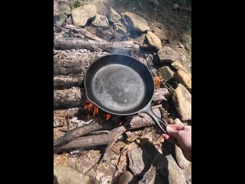 How to Season Cast Iron Pan over a Camp Fire 🔥 #camping
