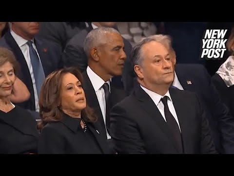 Kamala Harris huffs after spotting Trump and Obama chatting good naturedly