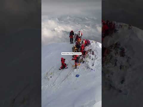 Drone footage of climbers reaching the summit of Mount Everest!