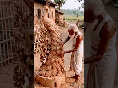 Realistic Wooden Peacock Sculpture Making 🦚🔥 | Wood Carving Art #shorts #peacock #trending #song
