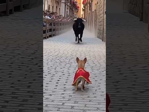 Chihuahua detiene a un Toro 🤠#toros #españa #encierro