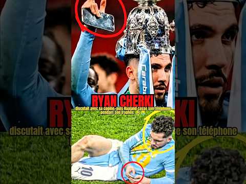 Rayan Cherki discutait avec sa copine, puis Haaland casse son téléphone pendant son trophée. 🤣😭