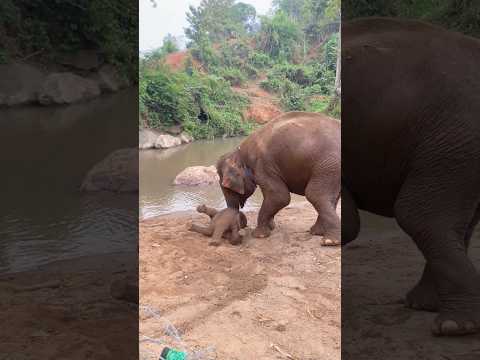 Baby elephant playing safely with mom #elephant #babyelephant #shorts