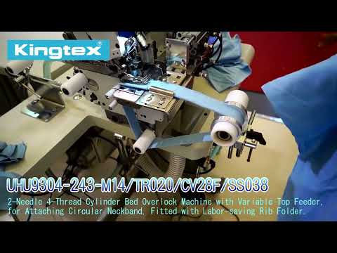 Kingtex UHU9304/TR020 -- Top Feed Cylinder Bed Overlock/Circular Neckband Attaching/Pneumatic Folder