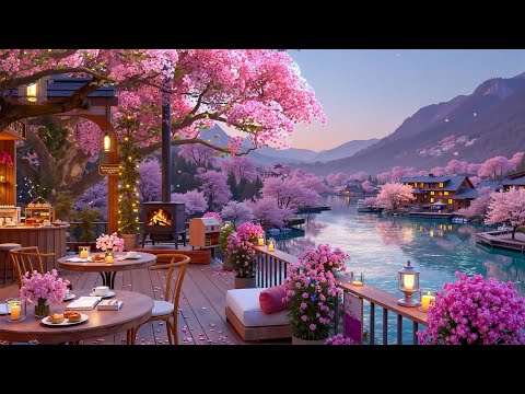 Warm Jazz at a Cozy Lakeside Terrace | Spring Cherry Blossoms & Café Ambience for Relaxing Retreat🌸