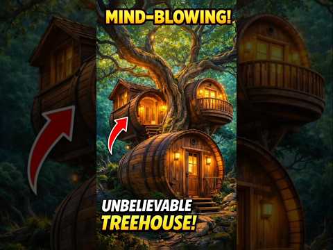 From Tree to Barrel Treehouse in 40 Seconds 🤯 | 4 Seasons Timelapse Build