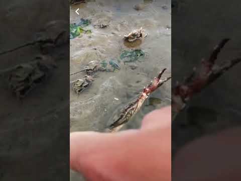 Gathering Seafood for the Beach including, Flounder, Crabs, Seaweed, muscles In Sand & Water