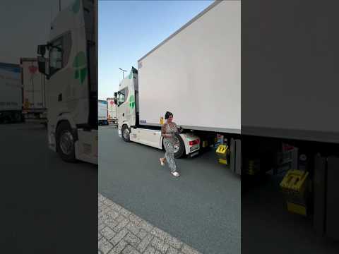 A #beautiful Europe 🇪🇺girl dancing in Front of #Scania trucks 🚛🚚#transformation #beautiful