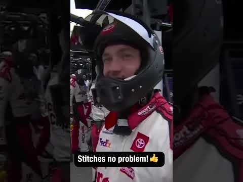 Denny Hamlin’s front tire changer had to get 8–12 stitches during the red flag 🤕🏥 #shorts #NASCAR