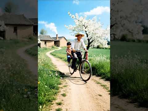 Grandpa, Girl & Dog: Joyful Bike Ride Through the Village #scenery #peacefulmoments