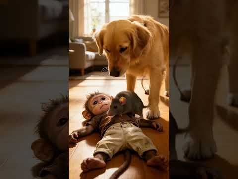 ππ± Golden retriever: "Here's a gift for you!" Monkey: "No thanks!" ππ#mouse #dog #monkey #funny