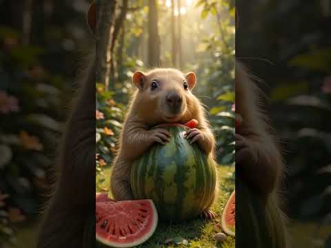 Lucky Capybara Duo! 🍉🐾 Sweet Wild Watermelons! #Capybara #Shorts #ai #cute #animals