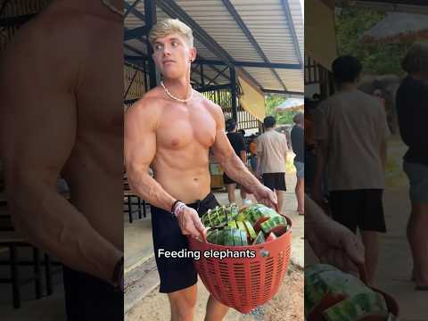 Fitness model feeding elephants #lgbt #blonde #sixpack #chest