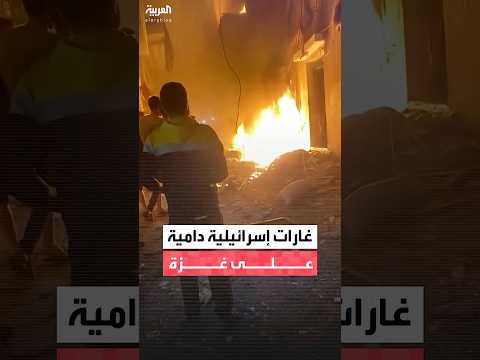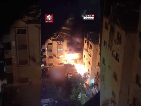 حريق في موقع غارة إسرائيلية استهدفت شقة سكنية في منطقة اليرموك وسط مدينة غزة