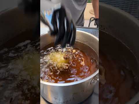 Crispy fries with flour in hot oil