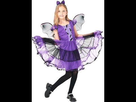 Girls Bat Witch Costume for Kids Halloween Fancy Dress up Purple Tutu Dress with Headban and Wings