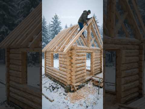 Alaskan Snow Log Cabin πΊπΈ | Winter Forest Build #LogCabin #SnowCabin #Alaska #forestcabin