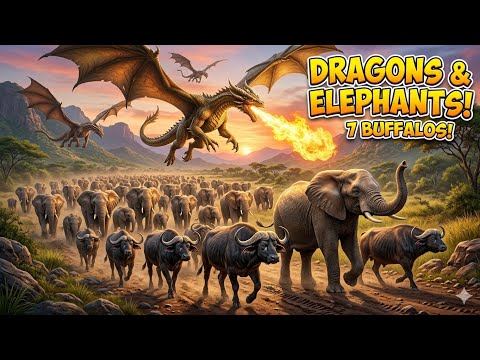 Dragons vs Elephants 🐘 & 7 Buffalos! | Wild Animal Adventure for Kids.