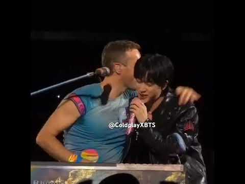 the way Jin running to Chris Martin and Chris kissing on his head the pure love they have 💜#coldplay