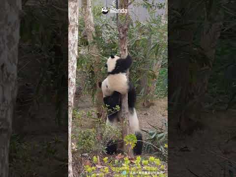 Mom and baby panda, calm and unbothered엄마와 아기 판다, 여유 만렙이에요 #둥이 #funny #cute #animals #nature #panda