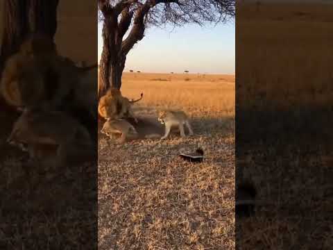 fearless honey badger fights over a male lion #shorts