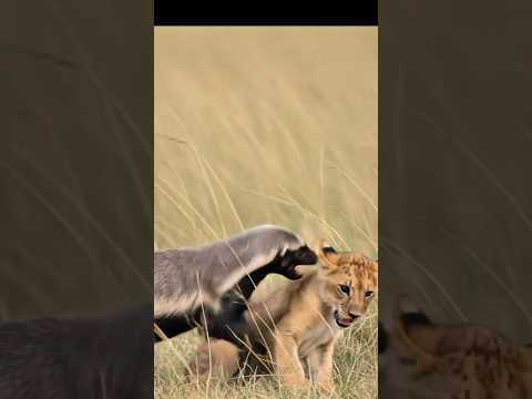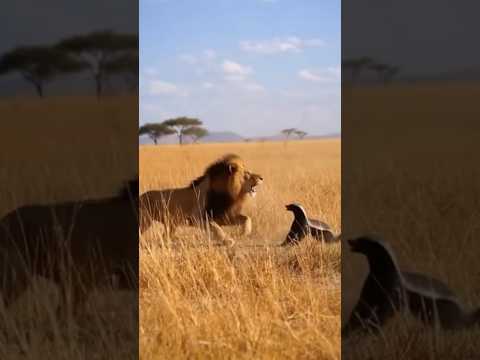 Fearless Mayhem! Honey badger vs lion🦡🦁#shorts #animals #fearless