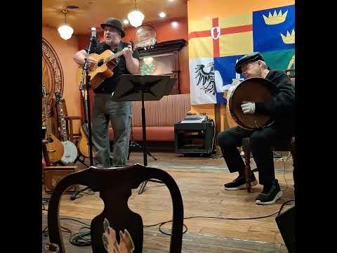 Kathy "Murph" Revell of Des Moines Irish Session on the bodhran with Andreas Transo in Galena, IL.