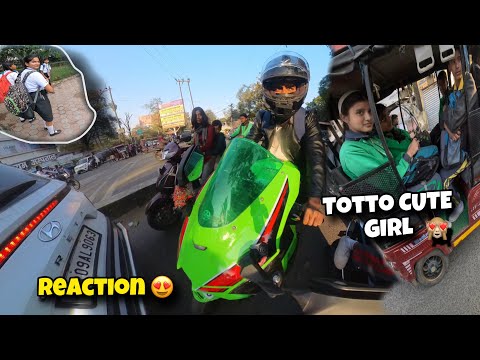 Cute Girl On KAWASAKI ZX10R Totto Girls Reaction 😍 || School Reaction's#reaction