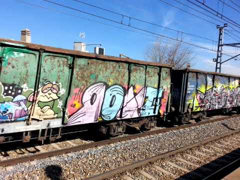 Tren chatarrero con vigas en Vallecas Madrid