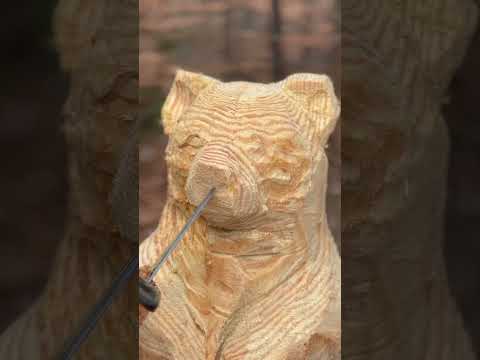 Carving a bear holding a honey pot #asmr #chainsaw #sculpture #tree #shorts #chainsawcarving #bear