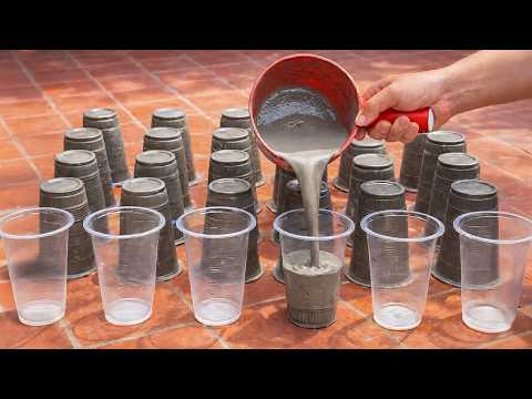 Pour cement into the plastic cups. A million-dollar masterpiece that anyone can make.