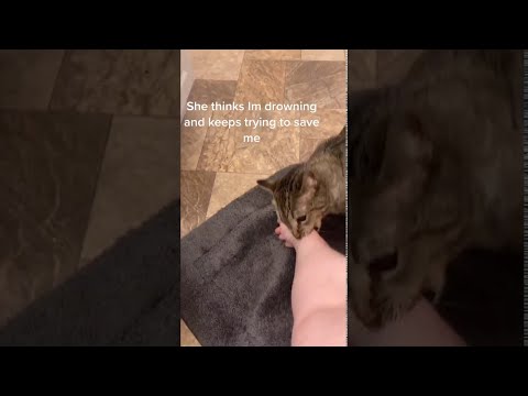 Protective Kitty Wants to Save Human from Bathtub || ViralHog