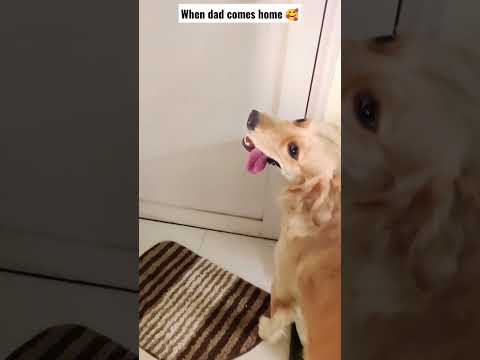 Dog's adorable reaction when dad comes home π₯°#shorts #tiktok #cute #goldenretriever #funny