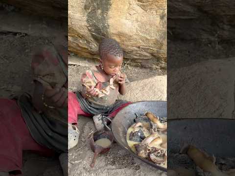 How a Hadzabe Mother Feeds Her Children in the African Wilderness #hadzabetribe #food