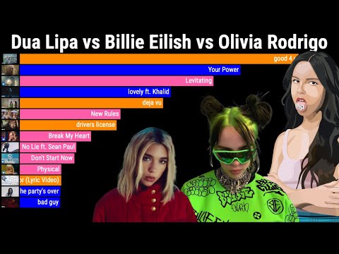 Dua Lipa vs Billie Eilish vs Olivia Rodrigo Most Popular Songs on Youtube Battle 2018-2024