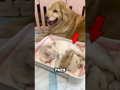 This cat adopts a golden puppy as her own ❤️