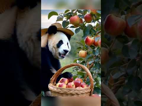 Panda harvesting apple 😂🍎 #short #viralshorts #panda #fruit