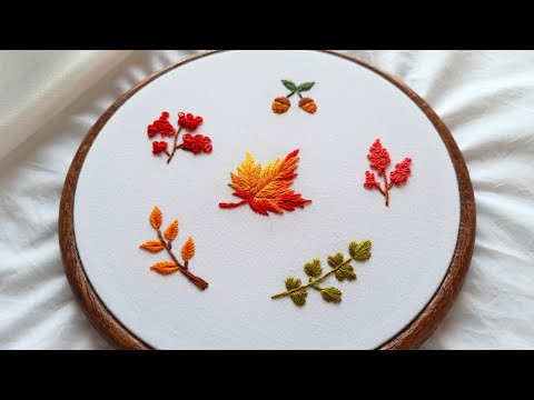 Autumn leaves embroidery | Autumn botanical elements | Easy leaf hand embroidery stitches