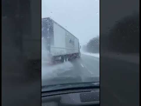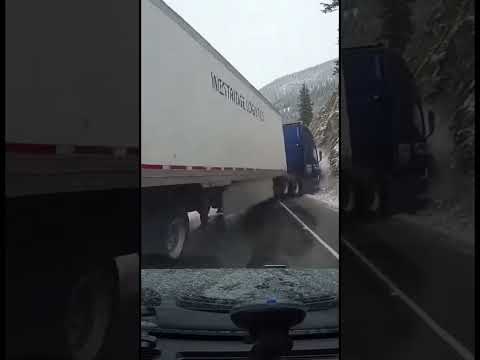 Jackknifing Semi Blocks Icy Road in Close Call
