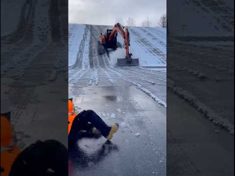 Excavator Slides Down Icy Hill Out of Control